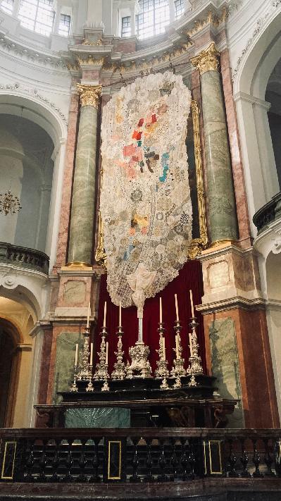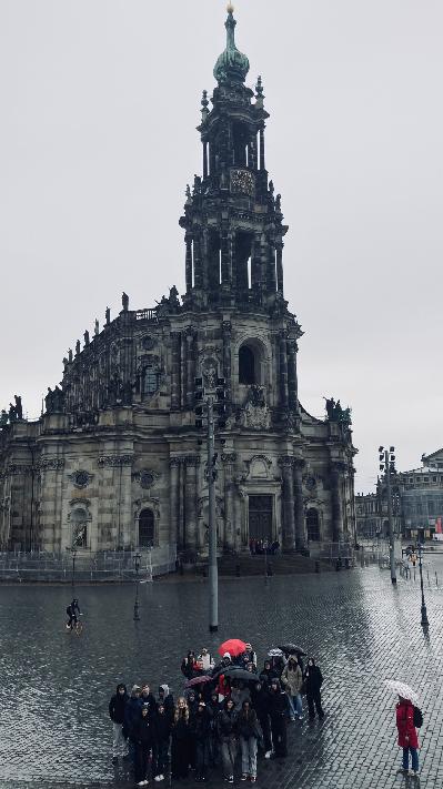 Pak jsme společně prošli kolem zdi „Fürstenzug“ (průvod saských vládců) a navštívili jsme katolický kostel HOFKIRCHE. Tento kostel patří k nejznámějším ve městě. Prohlídka vedla dále po Brühlské terase (označované jako „Balkon Evropy“) až k evangelicko-luteránskému kostelu FRAUENKIRCHE. Oba kostely mají pohnutou historii. Koncem 2. sv. války, v únoru.1945, byly oba kostely během bombardování Drážďan silně poškozeny. Ruiny Frauenkirche zůstaly ve městě až do roku 1990 jako memento této děsivé války. Dnes jsou vzpomínkou na tuto dobu jen tmavé kameny, které byly v původní stavbě, a dotvářejí krásu kostela, který je jednou z nejvýznamějších barokních staveb v Německu.